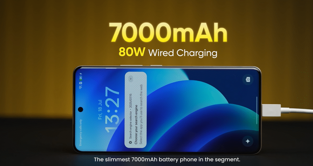 Slim Profile: Despite housing a massive 7000 mAh battery, the Realme 15 Pro weighs just around 187 g and maintains a thickness of 7.69 mm.